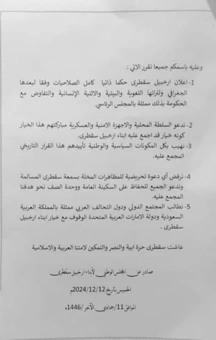 سقطرى اليمنية تعلن الحكم الذاتي: المجلس الوطني يعلن الانفصال وسط ترحيب إماراتي