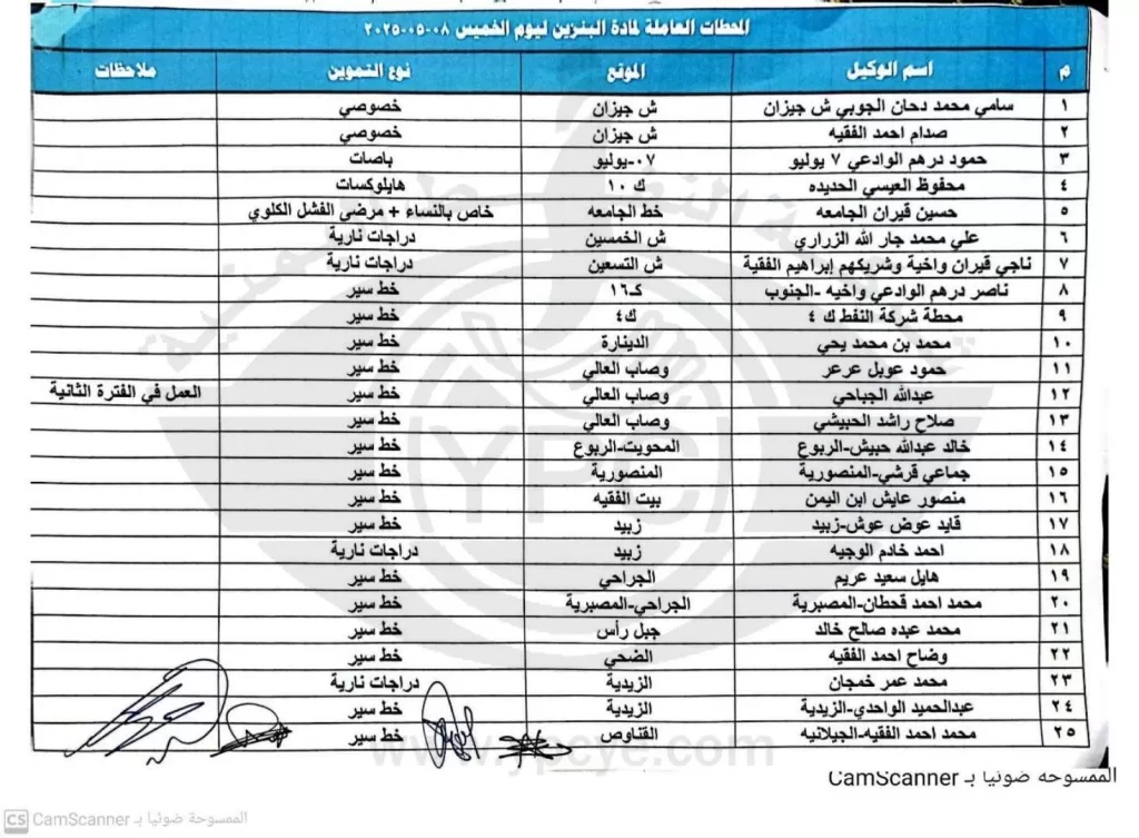 - سيتم إدراج أسماء المحطات العاملة في مديريات محافظة ريمة هنا فور استخلاصها من الصور. يرجى مراجعة الصور الأصلية للحصول على القائمة التفصيلية.
