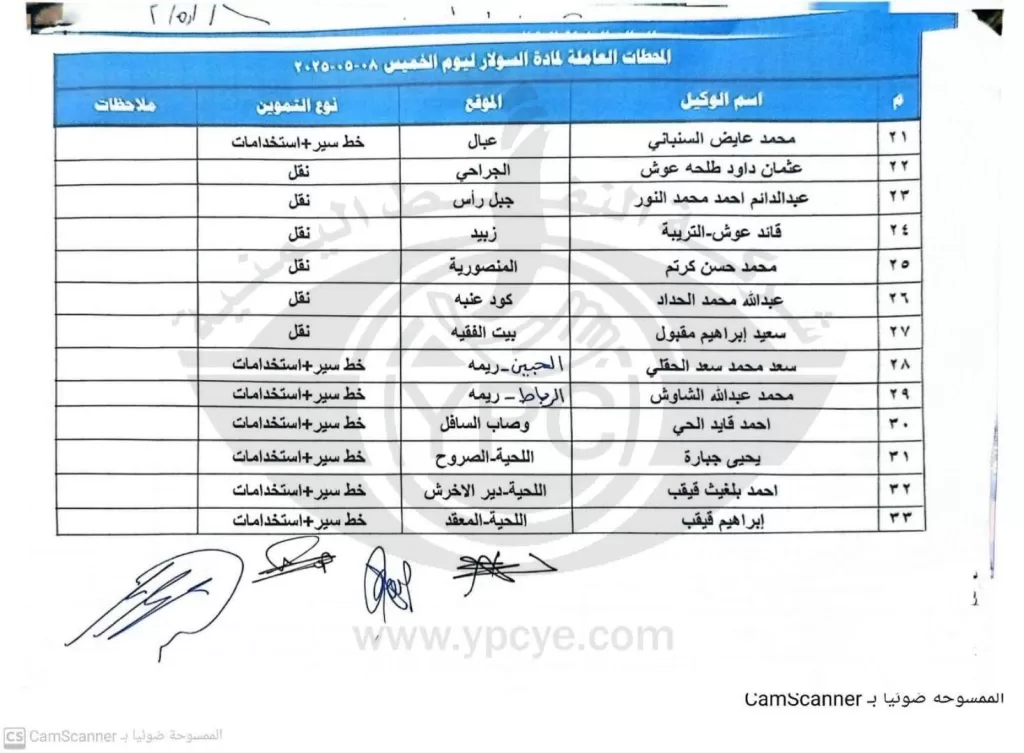 - سيتم إدراج أسماء المحطات العاملة بالديزل في مناطق ذمار هنا فور استخلاصها من الصور. يرجى مراجعة الصور الأصلية للحصول على القائمة التفصيلية.